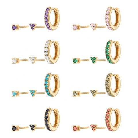3Pcs/Sets Colorful Crystal Earrings for Women 925 Silver Huggie Ear Piercing Hoop Earrings Jewelry Earring Jewelry Gifts