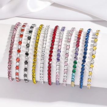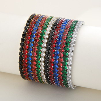 4毫米不锈钢彩色多锆石网球弹力链手链女可调饰品礼品